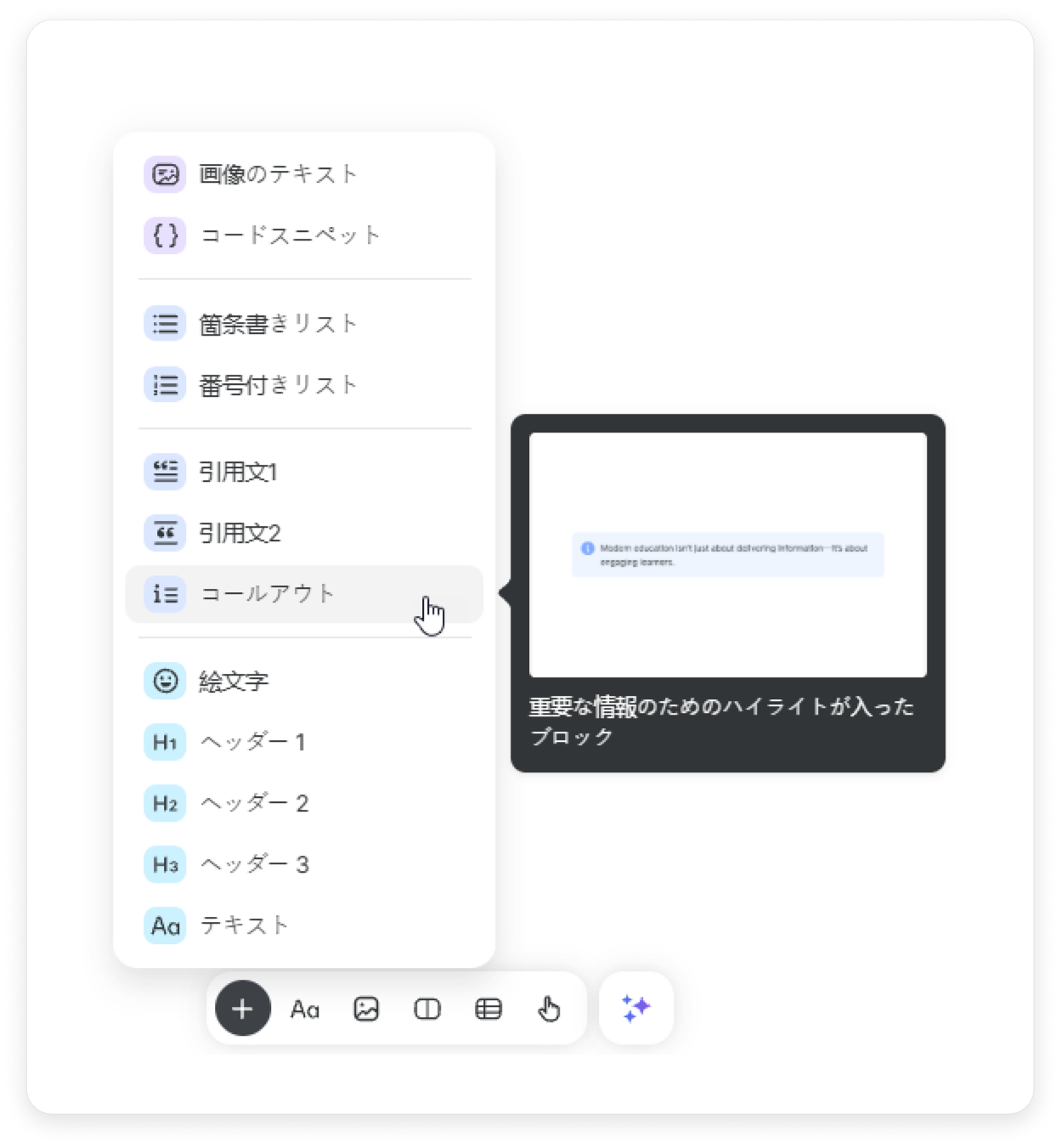 - ツールバーで、テキストに移動してコールアウトを選択します