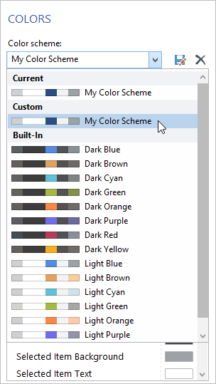 Your color scheme will be saved and will appear in the Colorscheme drop-down menu.