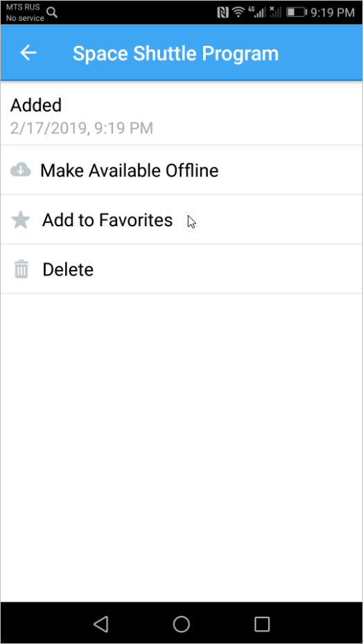 You will immediately see the page with a list of options. Here you can view the presentation, download it to your mobile device, add to favorites, or delete.