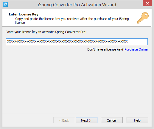 To purchase the iSpring Converter Pro license, click Purchase Online.