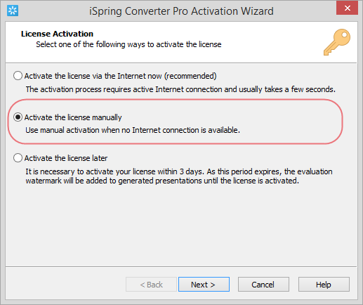 To start using iSpring Converter Pro without the trial period limitations, you need to obtain a product license and activate it.