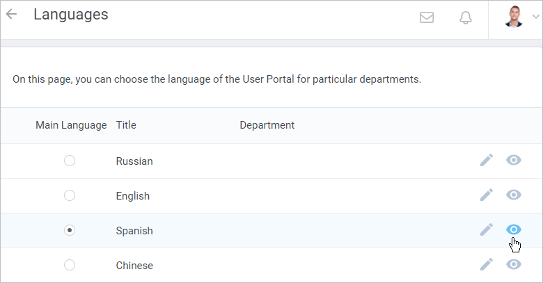 To choose the language version of the User Portal for a specific department: