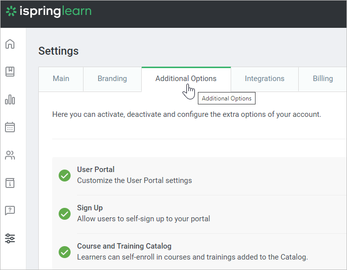 If your students or employees live in different countries and speak different languages, select a language version of your user portal. Currently, iSpring Learn includes 27 languages: English, Russian, Spanish, Simplified Chinese, Traditional Chinese, Japanese, Portuguese, German, Mongolian, French, Italian, Dutch, Finnish, Ukrainian, Norwegian, Polish, Azerbaijani, Kazakh, Romanian, Korean, Bulgarian, Czech, Uzbek, Danish, Greek, Arabic, Indonesian and Catalan.