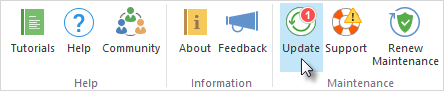 Any updates available after your Maintenance Plan expires are available on a trial basis. If your Maintenance has expired, you will see a notification window. Just click Renew Maintenance on the toolbar to renew your subscription.