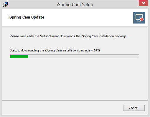 The update wizard will download the files of the new version. When the download is complete, close all iSpring Cam windows and click Next.