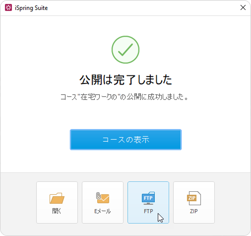 - パブリッシュ プロセスが完了したら、「FTP」をクリックして、HTML5 形式のプレゼンテーションをサーバーにアップロードします。