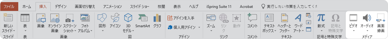 PowerPointプレゼンテーションには、スライドのPowerPointの挿入タブを使用して追加する音声や動画が含まれる場合があります。
