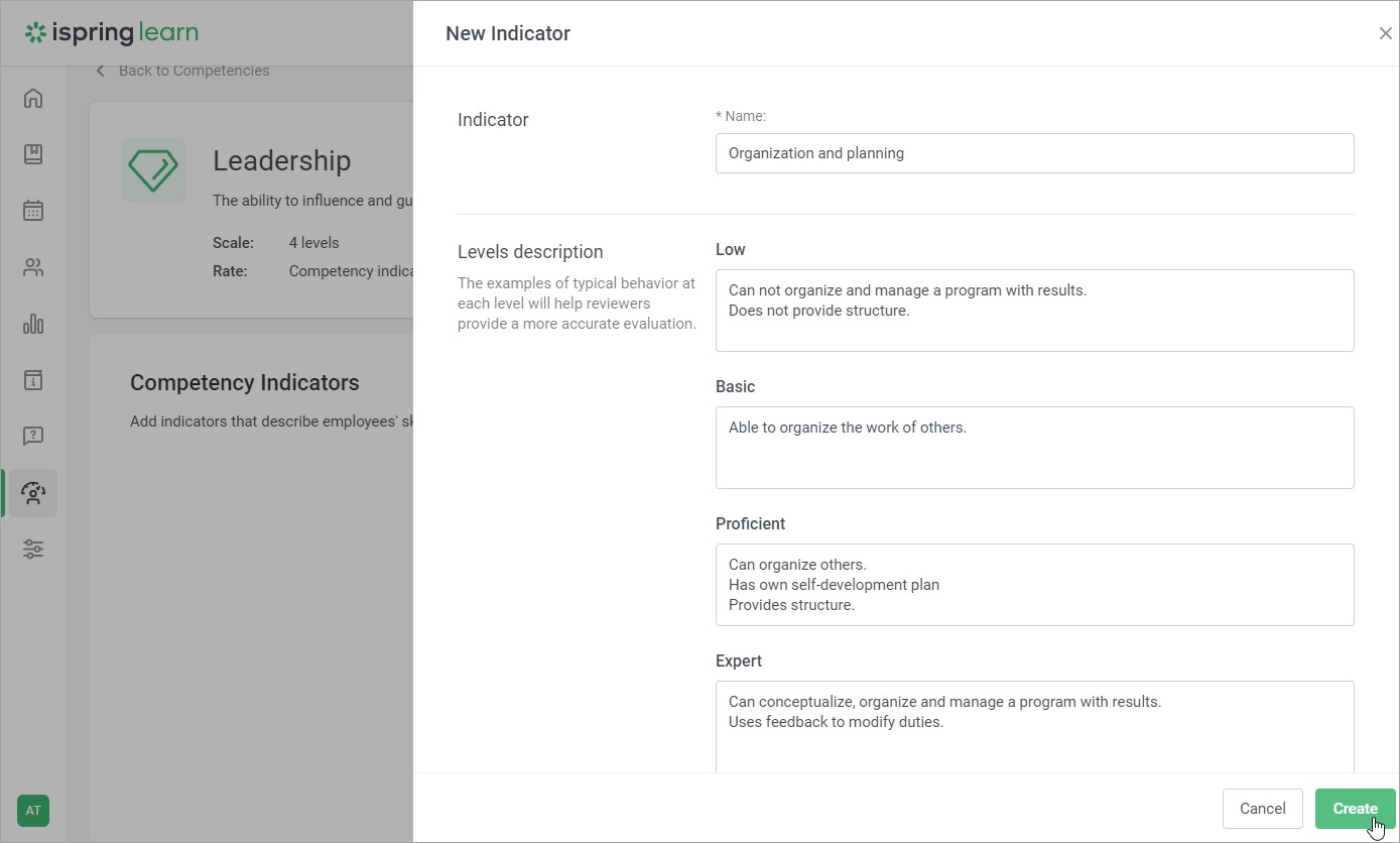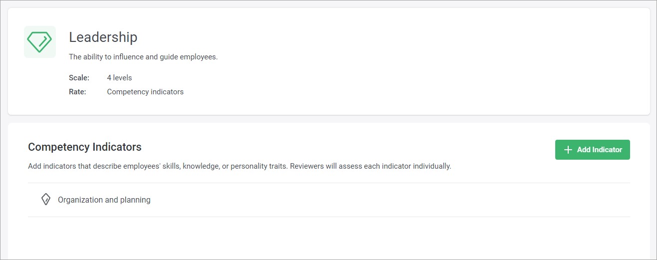 If you have chosen the Competency Indicator type, you need to add indicators and describe them.