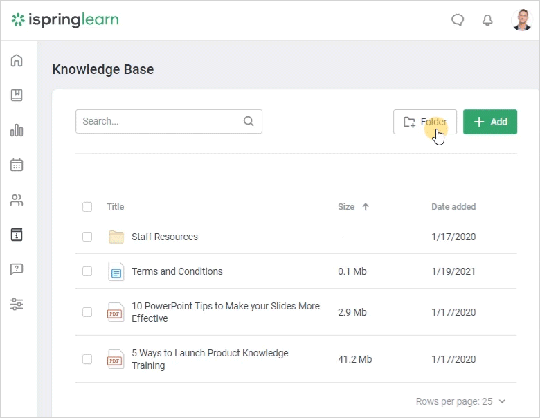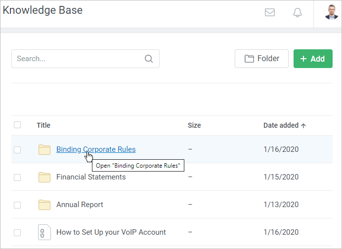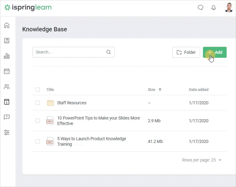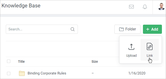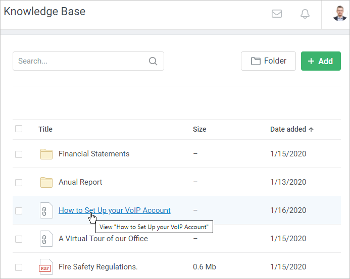 Add to the Knowledge Base items of the following formats: .doc, .xls, .pdf, .ppt.