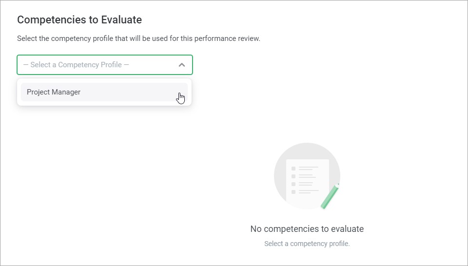 - In the Competencies to Evaluate, select a competency profile.