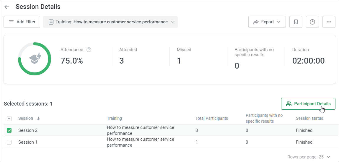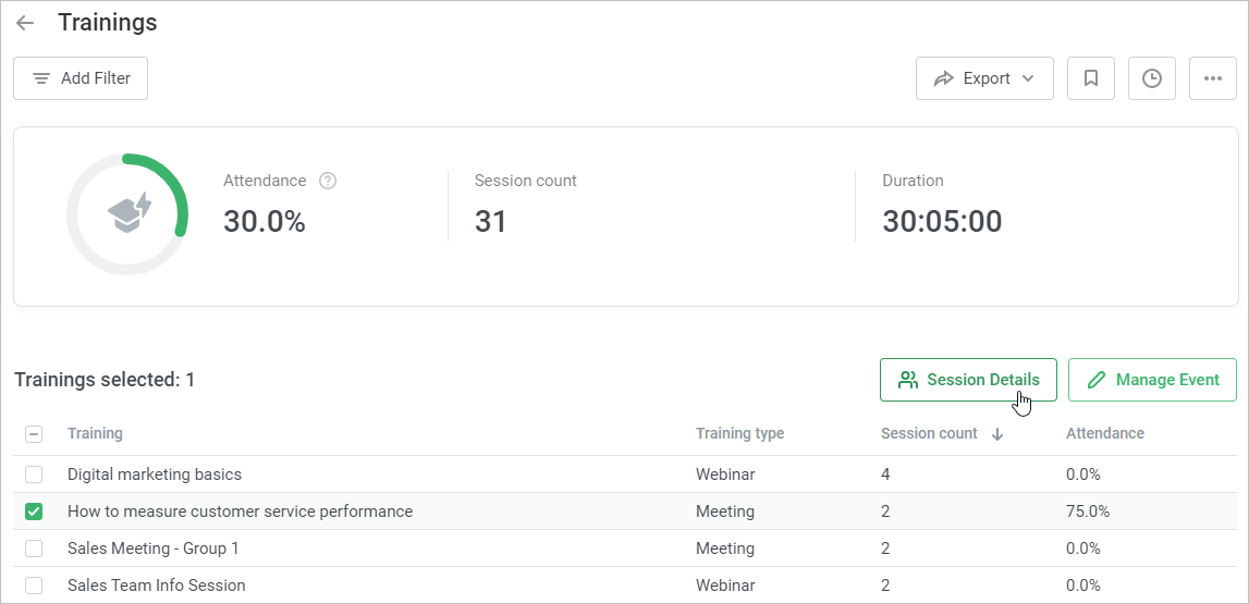 Trainings that were created by the user with a custom role and trainings that were added by users from the departments they manage and their sub-departments