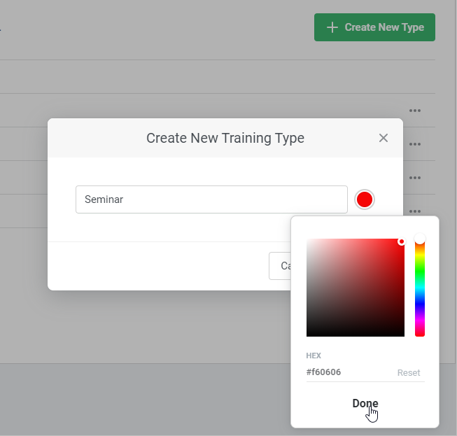 - Select a color for a new type by clicking on the color palette and click Done.