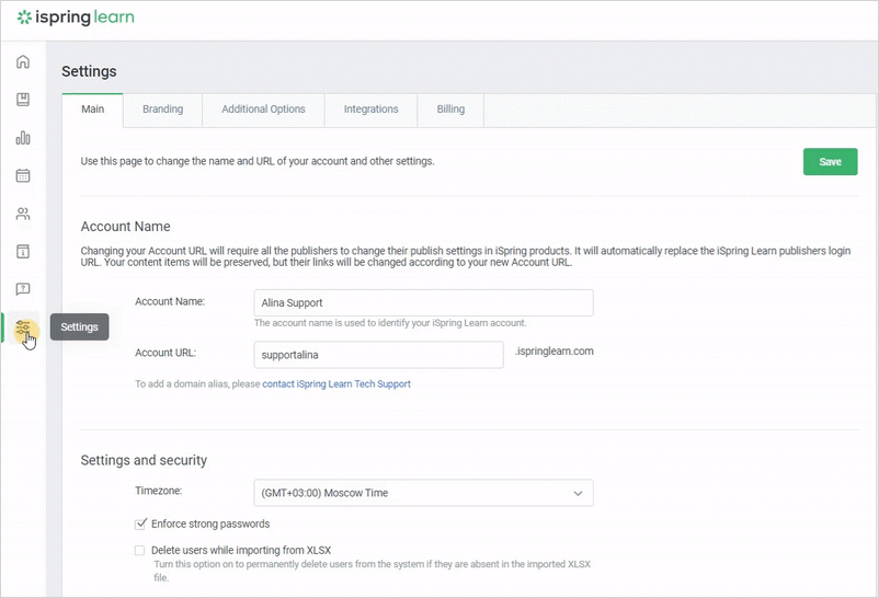 - Go to the Settings section and open the Additional Options tab.