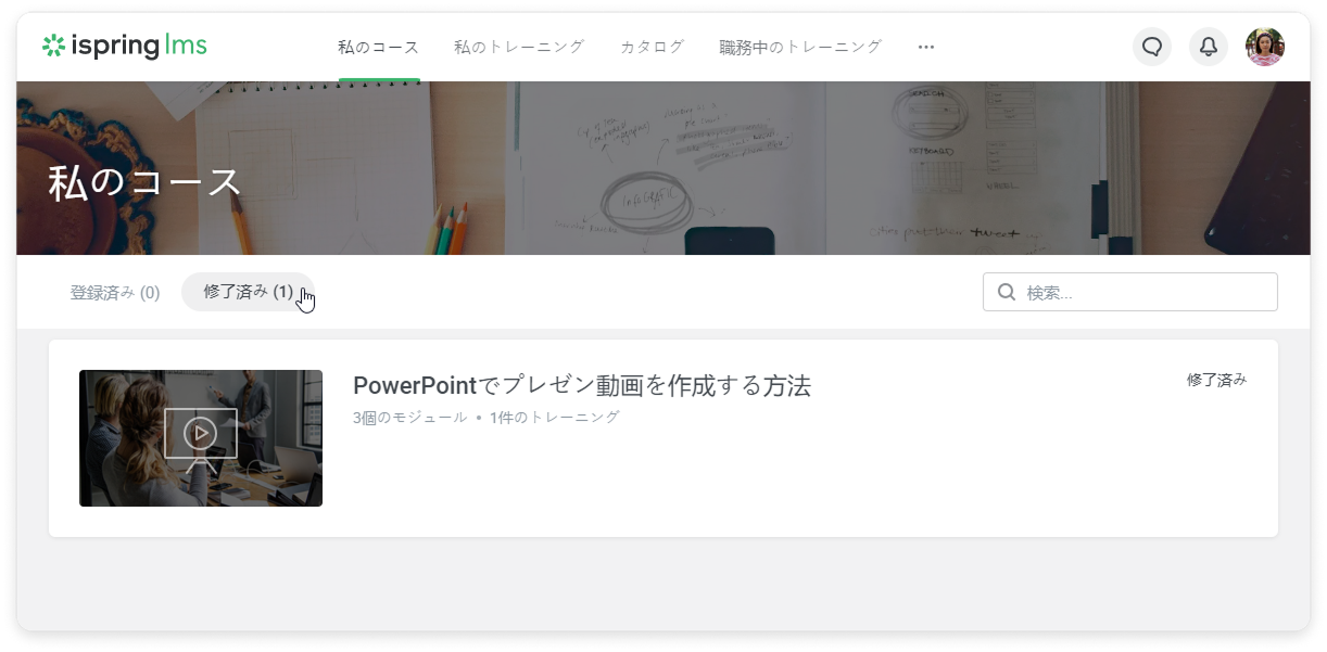 iSpring LMS 学習内容 コース 登録 Current: コースステータスの編集 コースステータスの編集 管理者は手動でコースステータスを編集する必要があることがあります。これは、別の役職にいる間に学習者がすでにテーマを学習している時や、iSpring LMSアカウント外でコースのモジュールをオフラインで合格した時に起こることがあります。 管理者がこのユーザーのためにコースステータスを完了に変更することは当然のことです。その結果として、ユーザーが繰り返しモジュールを見ることから解放し、レポートでコースを完了したという事実を維持できます。 手動ステータス編集コースステータスを編集する方法:学習内容セクションでコースを選択し、編集に移動します次に、登録タブを開いて1人以上のユーザーを選択し、登録を編集をクリックします開かれたサイドバーで、ステータスフィールドにあるペンの画像をクリックしますコースメニューで修了済みステータスを選択します。編集理由とコース完了日を指定し、適用するをクリックします デフォルトでは、完了日はステータス変更日と一致します。 デフォルトの完了時間は12:00です。 例えば、5/15/2020 12:00。 保存ボタンをクリックしたことを確認します。 キャンセルをクリック、または変更を保存せずにサイドバーを閉じた場合、コースステータスは変更されませんコースステータスが変更されました。 新しいステータスは、登録タブの下のステータス列に表示されます ユーザーポータルでは、コースは修了済みタブに移動されます。レポートでは、アイコンが手動ステータス変更通知を表示します。 アイコンをマウスオーバーする際に、コースステータスを変更した人、時期、理由が分かります 注意:コースステータスが手動で変更された後、コースの期限は同じままです。コースステータスが手動で変更された後、コースモジュールのステータスも以前と同じままです。コースステータス通知は、ユーザーのアカウントとメールアドレスに送信されます。普通通りにコースを合格したように、学習者は獲得したすべてのポイント、バッジ、証明書を受け取ります。ユーザーがいくつかのコースモジュールを完了した場合でも、修了ステータスは別のステータスに変更されることはありません。複数のユーザーを選択していて、そのコースステータスが異なる場合、ステータス列で異なる値が表示されます。 ステータス変更プロセスの残りは、上述のステータスと変わりません。学習者の進度とコース詳細レポートから直接コースステータスを手動で編集できます。 自動ステータス編集自動ステータス編集は、通常、コースステータスがiSpring LMSで変更される方法です。 すなわち、モジュールが完了すると、コースステータスが自動で変更されます。コースステータスを手動で変更した場合、いつでも自動コースステータス編集に戻すことができます。学習内容セクションでコースを選択し、編集に移動します次に、登録タブを開き、ステータスが以前に修了に変更された1人以上のユーザーを選択し、登録を編集をクリックします次に、開かれたサイドバーで、ステータスフィールドにあるペンの画像をクリックしますステータスフィールドで、再計算ステータスを選択しますそれから、適用するをクリックします保存ボタンをクリックしたことを確認します。 キャンセルをクリック、または変更を保存せずにサイドバーを閉じた場合、コースステータスは変更されませんコースステータスは、合格したモジュール数に基づいて自動的に再計算されます。 新しいステータスは、登録タブの下のステータス列に表示されます。これで、コースステータスは、ユーザーが完了したモジュール数によって決まります教材追加後のコースステータス新しい教材をコースに追加する場合、すでにコースを完了しているユーザーのコースステータスは変わりません。 すべてのユーザーは、更新された教材へのアクセスがあります。例:管理者がコースを作成し、ユーザーに割り当てました。 ユーザーがコースを完了し、コースステータスは修了です。管理者がその後にコースに動画を追加しました。 ですが、コースステータスはユーザーには変わりませんでした。更新された教材がすべてのユーザーが完了するする必要がある場合、完了ステータスを変更することができます。そうするとユーザーが完了できます。コースステータスの変更方法:コースを開き、登録タブに移動します希望するユーザー名を選択し、登録を編集をクリックします次に、開かれたサイドバーで、ステータスフィールドにあるペンの画像をクリックしますステータスフィールドで、再計算を選択しますそれから、適用するをクリックします保存ボタンをクリックしたことを確認します。 キャンセルをクリック、または変更を保存せずにサイドバーを閉じた場合、コースステータスは変更されません変更を保存し