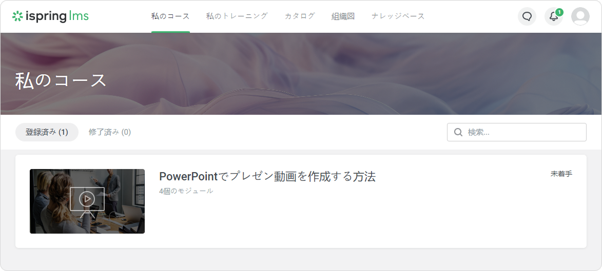 新規登録ボタンをクリックした後、学習者はユーザーポータルの私のコースセクションにいることが分かるでしょう。 そこで、割り当てられたすべてのコースを確認し(自動登録規則が作成された場合)、学習を始めることができます。