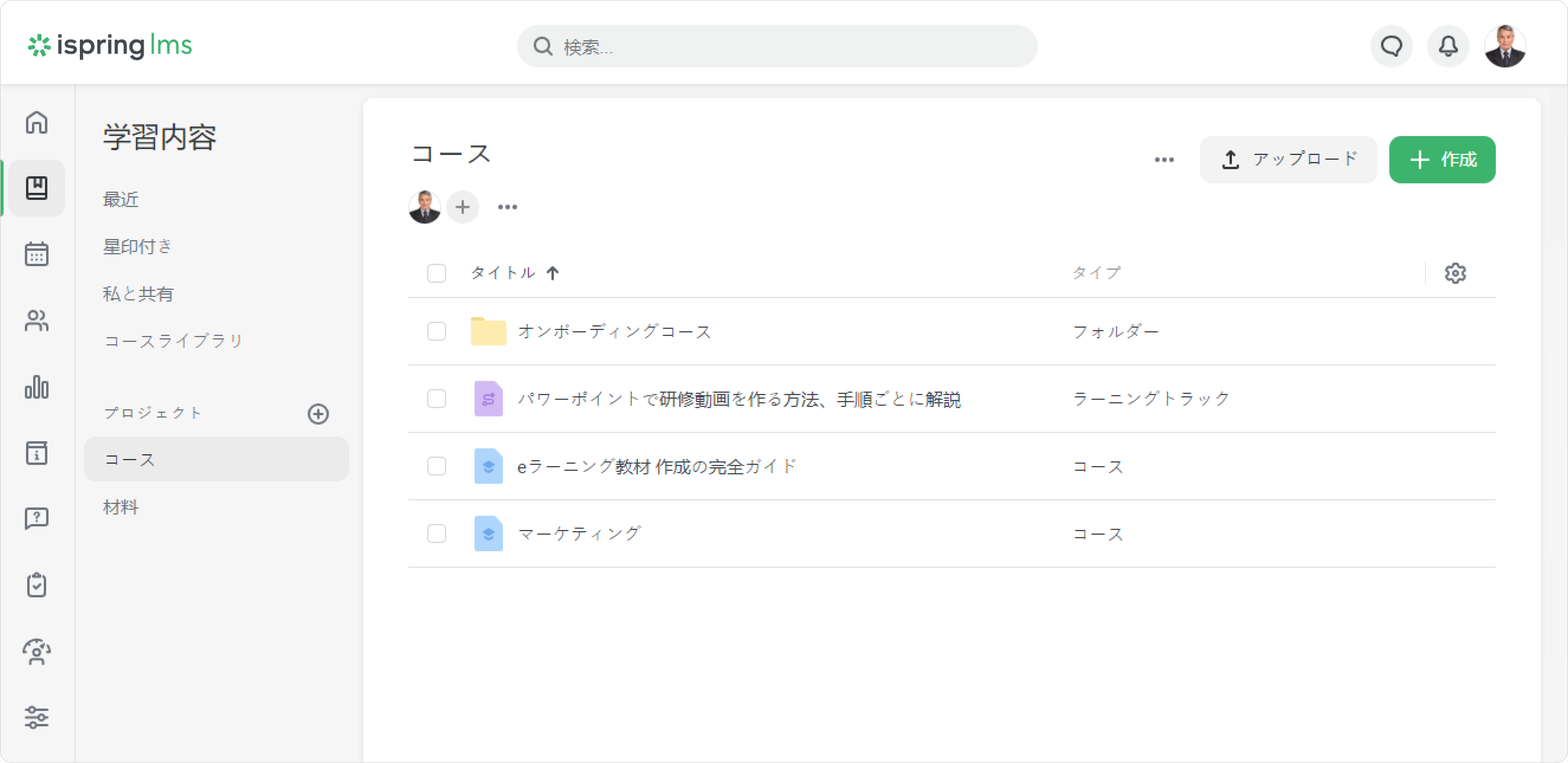 私と共有セクションには、自分にアクセスを与えている他の作者が作成した教材があります。 アクセスレベルに応じて、このセクションで教材を表示、編集できます。