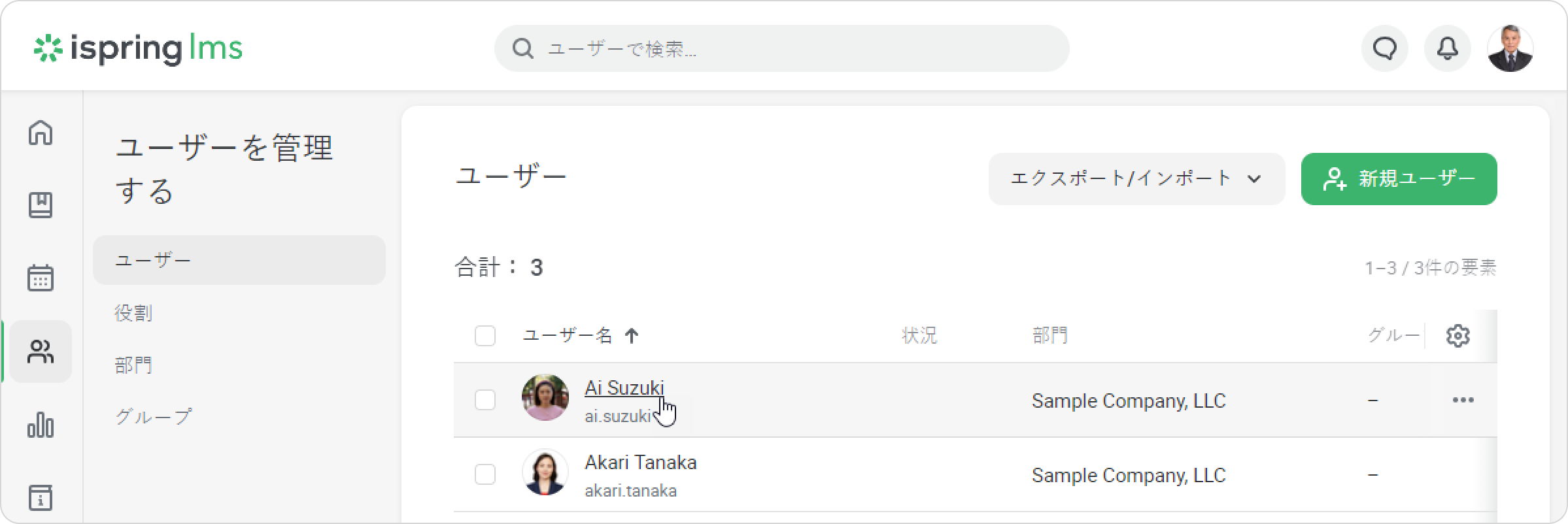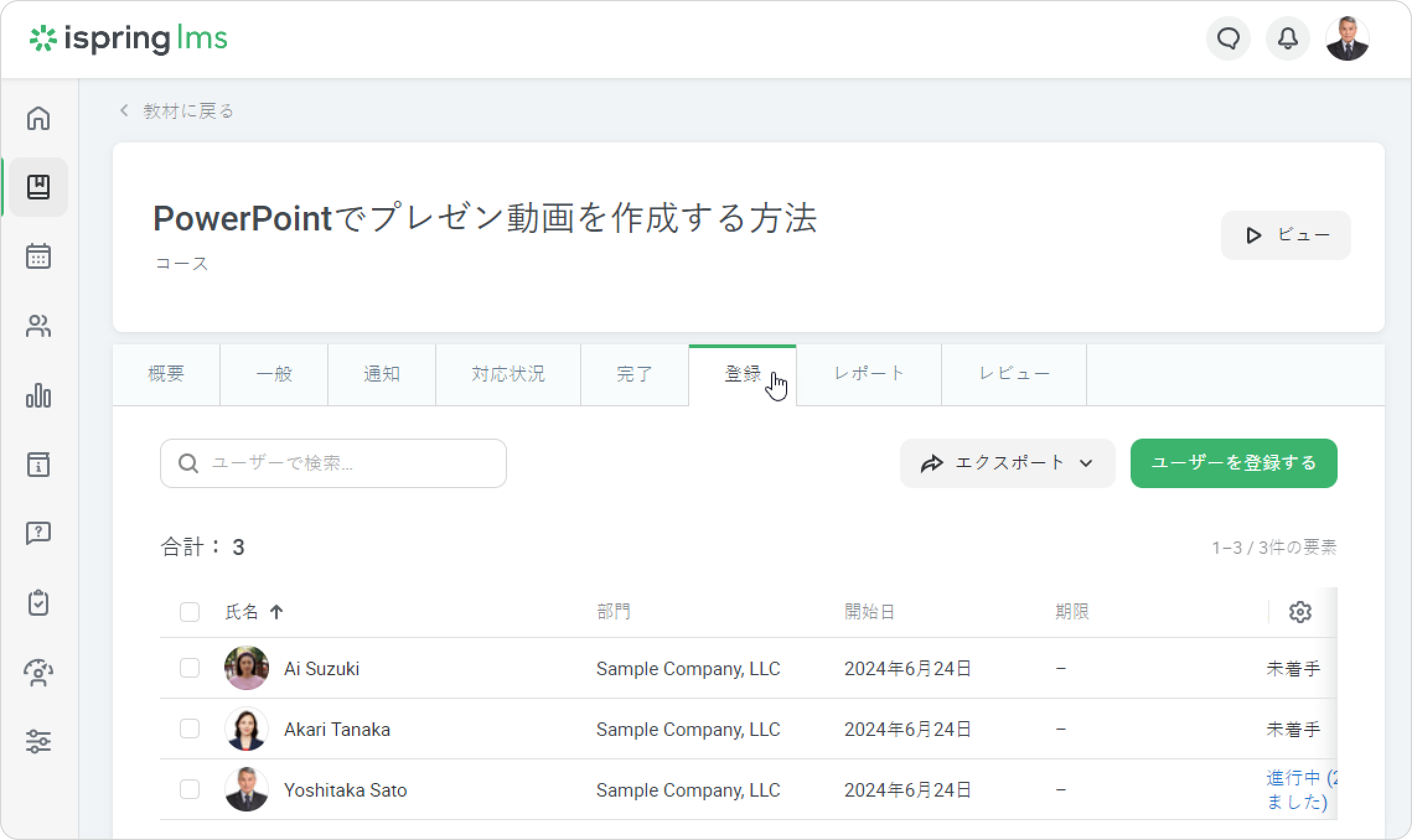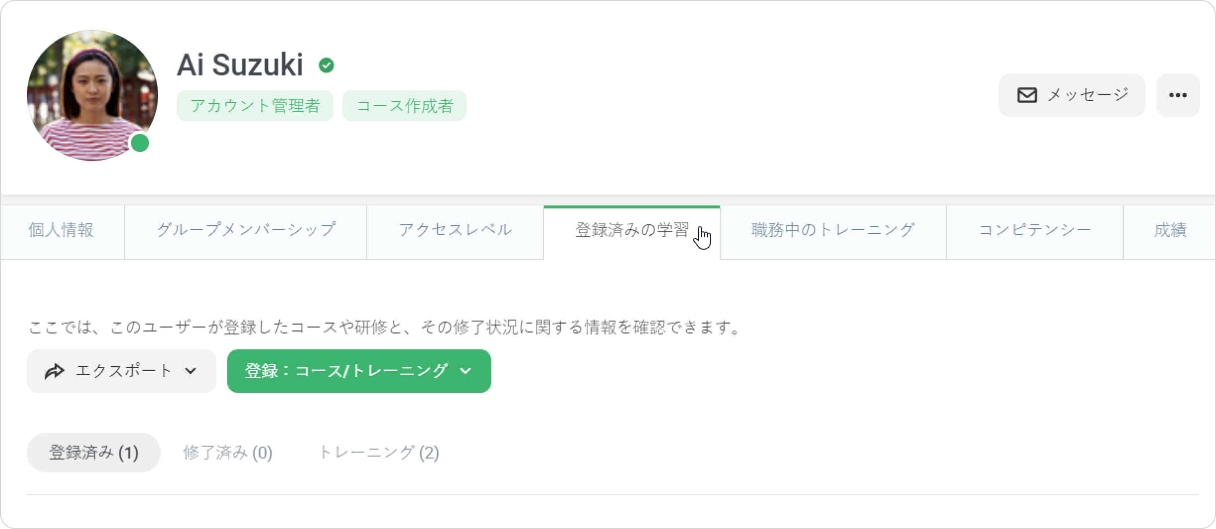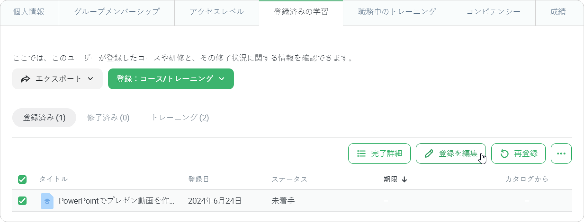 ユーザーの編集ページで、登録済みの学習タブを開きます