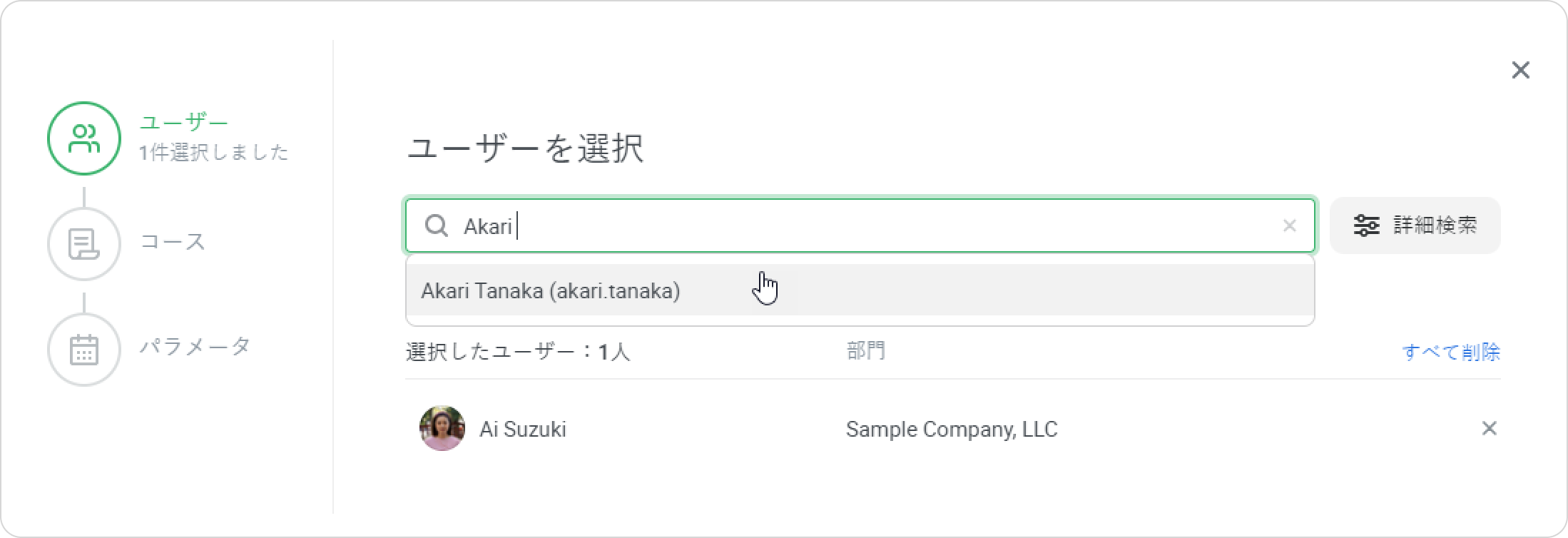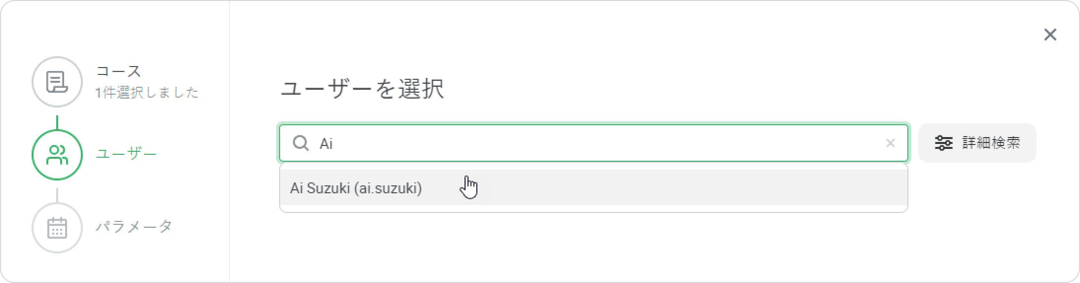 - 学習者を探せない場合、詳細検索オプションを利用してください
