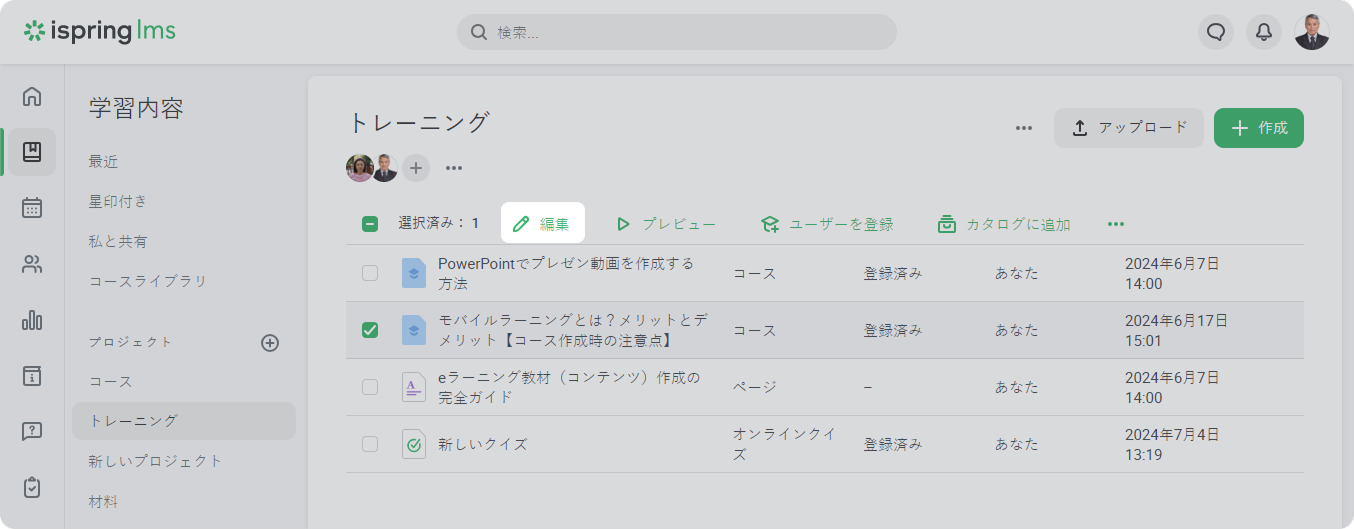 iSpring LMS 学習内容 コース Current: 自動登録 自動登録 規則として、従業員トレーニングは特定の基準に従って、同じ段階を進みます。 入社したばかりの新入社員は歓迎のコースを割り当てられ、会社について詳しく知り、事業活動の学習を始めます。 この記事では、iSpring LMSの自動登録オプションを見て行きます。 これは、従業員のグループや部門に基づいたオンライントレーニングコースを自動で割り当てることができるすばらしい機能です。 これによって、多くの時間とエネルギーを節約できます。 もちろん、必要であれば、手動登録はいつでもオプションとしてあります。 自動登録の規則追加デフォルトでは、iSpring LMSアカウントには自動登録の規則はありません。 新しい規則の作成方法:学習内容セクションで、自動で割り当てるコースを選択してそのコースを開きますコンテンツの編集ページで、対応状況タブを開きます自動登録セクションで、規則を追加をクリックします自動登録の条件を指定します。 選択した部門やグループに追加されたすべての新従業員は、選択したコースに登録されます 選択した部門とそのサブ部門のすべてのユーザーに規則を適用できます。 オプションの部門かサブ部門を選択します 次に、次のメニューでグループか部門名を選択します。規則数は無制限です。 トレーニングプロセスに必要なだけすべての規則を追加できます保存をクリックします追加する、特定のグループや部門に移動する、コース内で有効になったすべてのユーザーにコースを割り当てることができるようになりました。 規則が適用されるとすぐに、コンテンツアイテムに登録されたことが学習者に通知されます 自動登録はブロックされた(非アクティブな)ユーザーには機能しません。 自動コース登録は、まだ登録がないコースにのみ機能します。 自動登録を機能させるためには、既存の登録を削除する必要があります。 自動登録のキャンセル規則をキャンセルする方法:学習内容セクションで、自動的に割り当てられるコンテンツアイテムを選択して開きます コースの編集ページで、対応状況タブをクリックします削除したい規則の隣にあるごみ箱アイコンを押します保存をクリックします 1. 規則に使用されているグループか部門を削除する場合、規則は削除されます。 2. 規則のキャンセルは、すべての今後の登録に機能しますが、以前行われた登録はキャンセルしません。 重要自動登録規則を作成する際には、以下の重要なポイントを念頭に置いておきましょう。部門管理者は、自分が管理する部門とそのサブ部門にのみ規則を作成できます。例 アカウントのメイン部門は本社です。 販売、サポート、輸送部門が含まれます。 エドワード・ウィリアムズは、販売部門の管理者です。 販売部門のほか、そのサブ部門(コールセンターとVIP販売)の規則を追加できます。ですが、エドワードは、自分が管理していない部門の規則を作成できません。 例えば、本社と輸送部門の規則の追加、編集、削除の許可はありません。 部門管理者はグループの規則を作成でき、自分が管理していない部門に属するユーザーにも機能します。例 販売部門の管理者、エドワード・ウィリアムズが学習者グループの規則を作成しました。 このグループに追加されたすべての従業員は、「会社について知る」コースに自動的に登録されます。エドワードが作成した規則は、彼が管理する部門に属する学習者だけに機能するわけではありません。 「会社について知る」コースは、インターングループに追加または削除されるとすぐに、サポートと本社部門に属する生徒に割り当てられます。 作成された規則は、すでに条件に満足しているユーザーには影響を与えません。 自動登録は、今後の変更にのみ適用されます。 ダイアン・シルバーズは、トレーニンググループの開始に属します。 管理者は新しい規則を作成します:このグループに追加または移動されたすべての学習者は、HTML基本コースに登録されます。 ですが、規則はダイアンには機能せず、コンテンツは割り当てられません。 ですが、規則が作成された後に「トレーニング開始」グループに追加されたテディ・ブレイクは、すぐにコースに登録されました。 規則は以前コンテンツに登録された学習者には適用されません。 管理者は、アカウントにキャロライン・ジェンセンを追加し、彼女にアンケートを割り当てました。 後に、キャロラインはインターン部門に追加されました。 これが自動登録を引き起こし、この部門に追加または削除されるどのユーザーにもアンケートを割り当てます。ですが、アンケートは、繰り返してキャロラインに割り当てられませんでした。 プロパティと設定はコースで変更されることがあります。コースは、自動登録規則が機能する時に設定されるパラメータと割り当てられることにご注意ください。 ×
