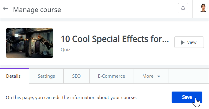Scroll down to the Author and Instructor section and select a user who will be the instructor. To do this, start entering the first letters of the name, last name, or email of the user you want to assign as an instructor. When the system suggests existing matches, left-click to choose the desired name.