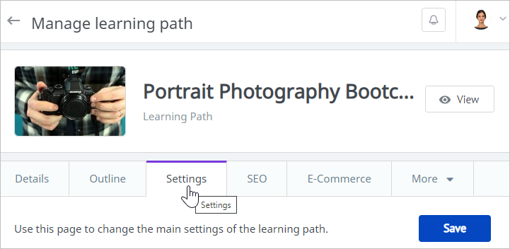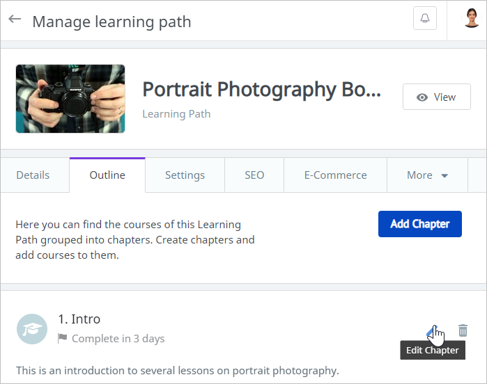 - On the Manage learning path page, open the Outline tab and click the pen icon.