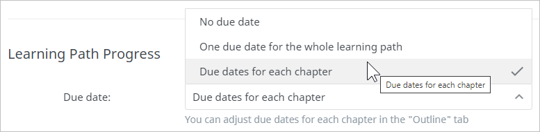 You can adjust completion settings for each chapter of a learning path. The following parameters are available: