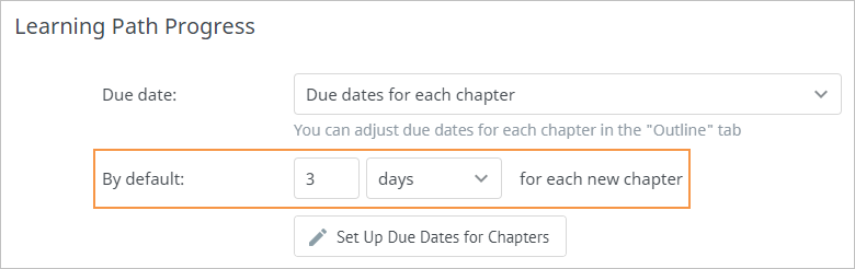 - In the By default field, set the number of days or weeks for all newly created chapters.
