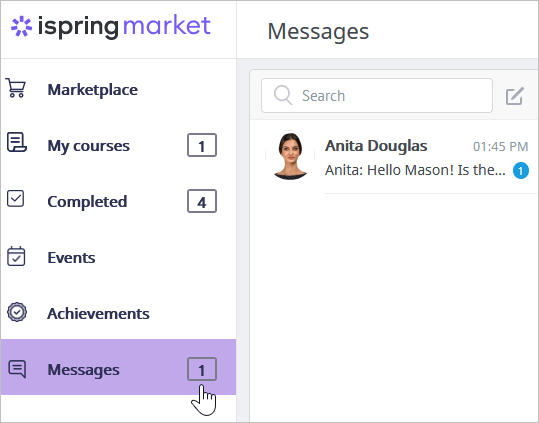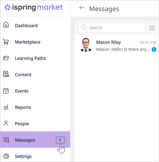 - The instructor can reply to the inquiry and can also delete the chat. Learn more about messaging in iSpring Market in the series of instructions on Messages.
