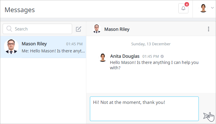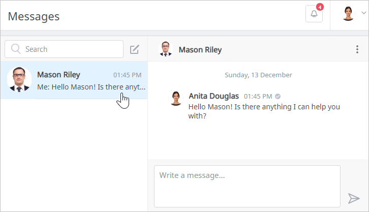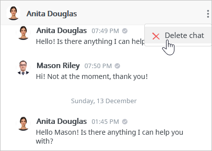 - To open the chat, click on it. The conversation will be opened in the right part of the page.