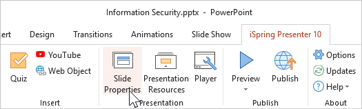 - Click the Slide Properties button on the iSpring Presenter toolbar.