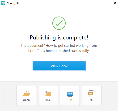 After the publishing is over, you will see the window with all possible actions you can perform over the published flipbook.