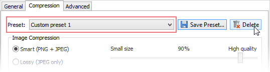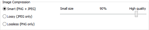 You can select one of the available compression options for your images. The lower the quality of images, the smaller the size of the resulting file.