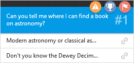 *TIP The colored circles at the top right corner of the scene give you information about it. The red flag indicates that scene is the first scene in the scenario. The yellow triangle means that one of the replies is not linked to any scene. The cup icon is added to the scored scenes.