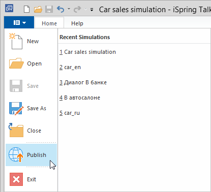 - iSpring Cloud - Send your simulation to the iSpring Cloud sharing service for public or private sharing.