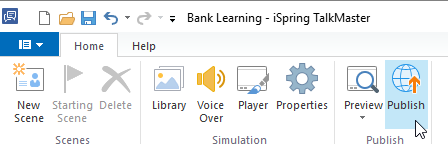 iSpring TalkMaster will convert your simulation to Flash and HTML5 and then upload it to your iSpring Cloud account. This is a time consuming process and it may take a few minutes.