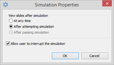 Allow user to interrupt the simulation | If this checkbox is selected, the user will be able leave the simulation and proceed to another slide. |