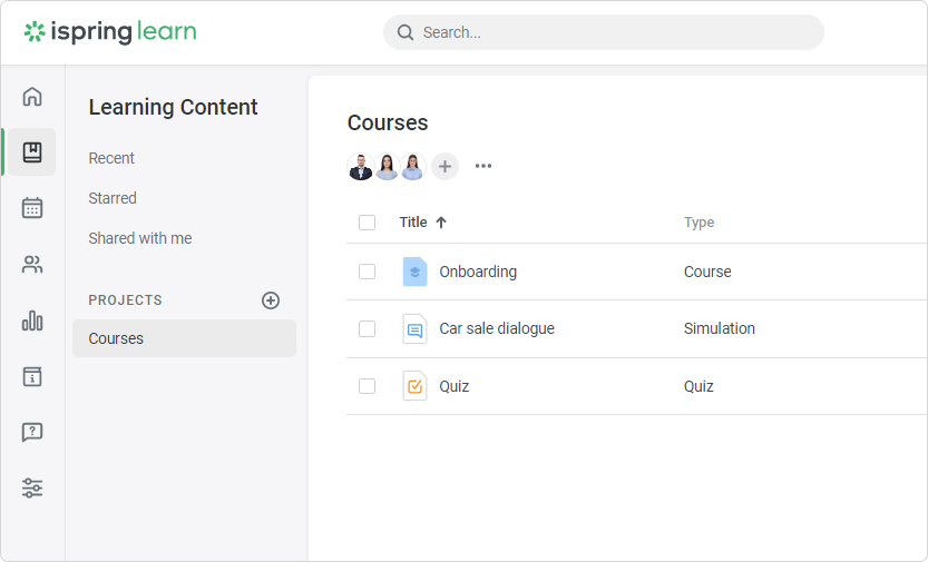 Once you have finished editing your role-play, upload it to iSpring Learn, a platform for delivering distance learning to employees and students with online testing and webinars.