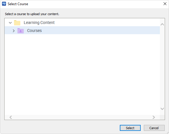 Then, click Browse... to the right of the Folder field and choose a course you want to upload your content to. After that, click Select.