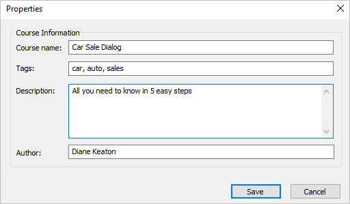 In the opened window, add tags, description, and the role-play author, and set up progress and completion parameters.