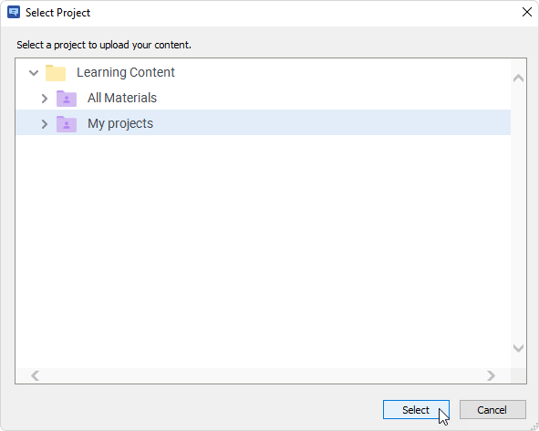 4. Click Browse... to the right of the Project field, choose the folder to upload your content, and click Select. By default, your role-play will be uploaded to the general content list.