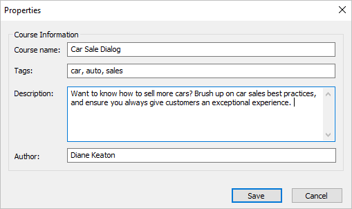 In the opened window, add tags, description, and the role-play author, and set up progress and completion parameters.
