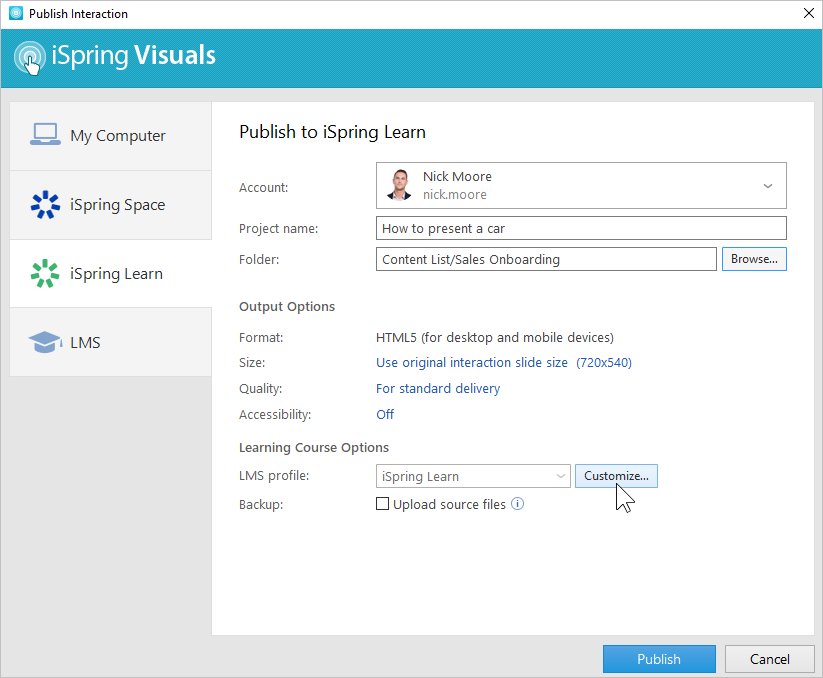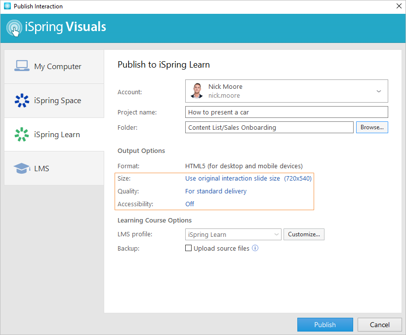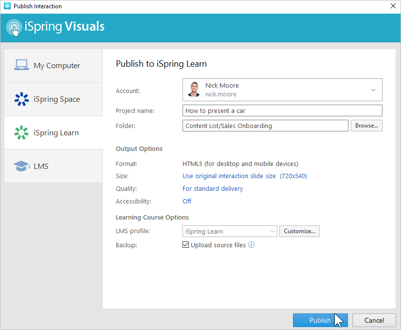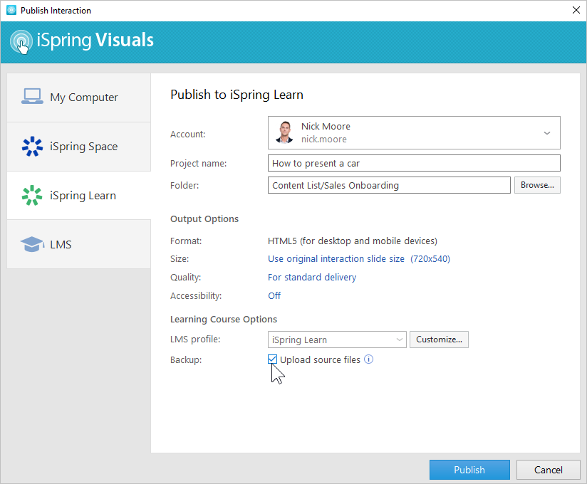 Publishing to iSpring Learn