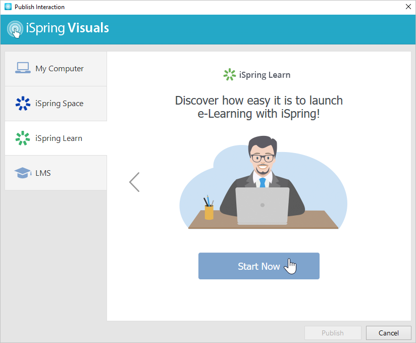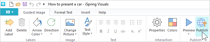 - Click Publish on the iSpring Visuals toolbar.