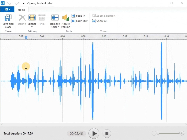 Narrators usually leave an extra second or two of silence at the beginning or end of each slide. If the silence parts seem unnaturally long, you can trim them off before and after your audio clip simultaneously.