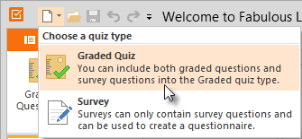- Choose Create New Quiz in the Application menu. Then, choose a quiz type: Graded Quiz or Survey.