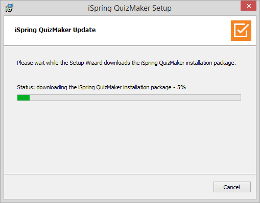 The update wizard will download the files of the new version. When the download is complete, close all QuizMaker windows and click Next.