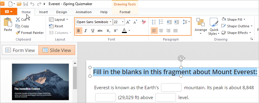 The text in the text box can be formatted. To do this, go to the Home tab, select the text whose appearance you want to change, and use the formatting tools.