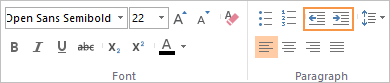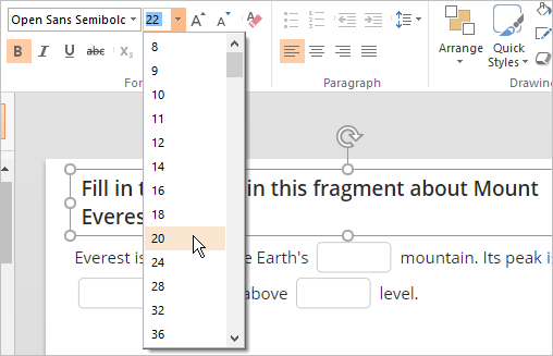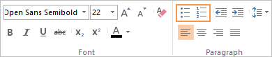 To change the font size, choose a value from the drop-down list or type any size you want in the font size field. Also, you can increase and decrease the font size by clicking uppercase and lowercase A letters next to the font size drop-down list.
