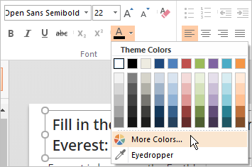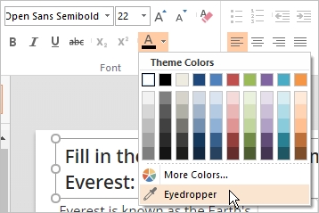 The Eyedropper tool is designed to identify the color of any particular area of the slide and apply it to the text.
