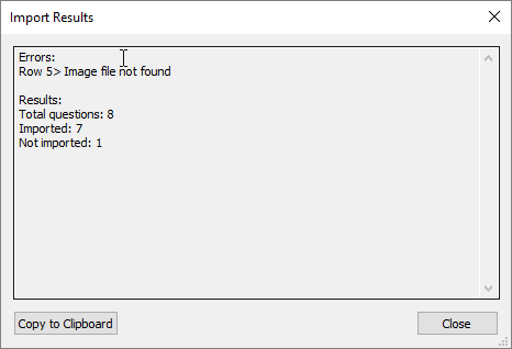 Those questions that are formatted incorrectly won’t be imported. The rows along with error descriptions will be listed in the Import Result window.